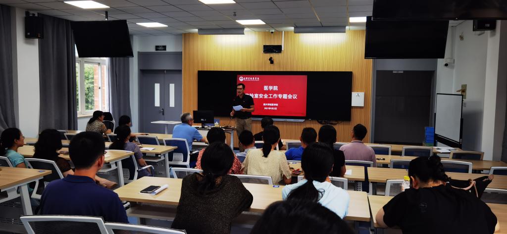 9月2日下午,医学院召开实验室安全工作专题会议。学院班子成员,系部(中心)主任、副主任,研究生导师及研究生参加了会议。校保卫处处长贺征兵受邀出席会议。会议由学院党委副书记李联钊主持。