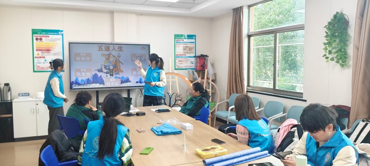 2026年3月21日下午,嘉兴大学安宁疗护志愿者团队走进高照街道秀清社区,开展以“品经典书香,悟五道人生”为主题的安宁疗护科普宣讲活动。大学生科普宣讲团成立于2025年,在省级教学团队“医学人文教学团队”全体教师的指导下,学生通过系统的线上理论学习、线下病房实践,体验式互动学习等形式,系统学习了安宁疗护知识。通过学生的多次演练,完善,结合社区老年人的学习特点,以大家耳熟能详的《西游记》为载体,生动解读“五道人生”——道谢、道爱、道歉、道谅、道愿。从感恩付出、勇敢说爱,到坦诚道歉、学会原谅、大胆说出心愿,每一道都讲得通俗易懂、贴近生活。